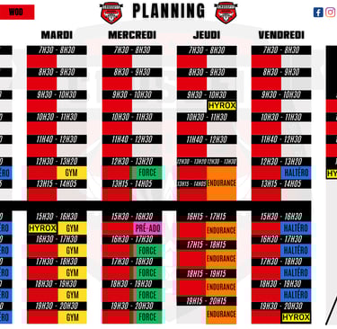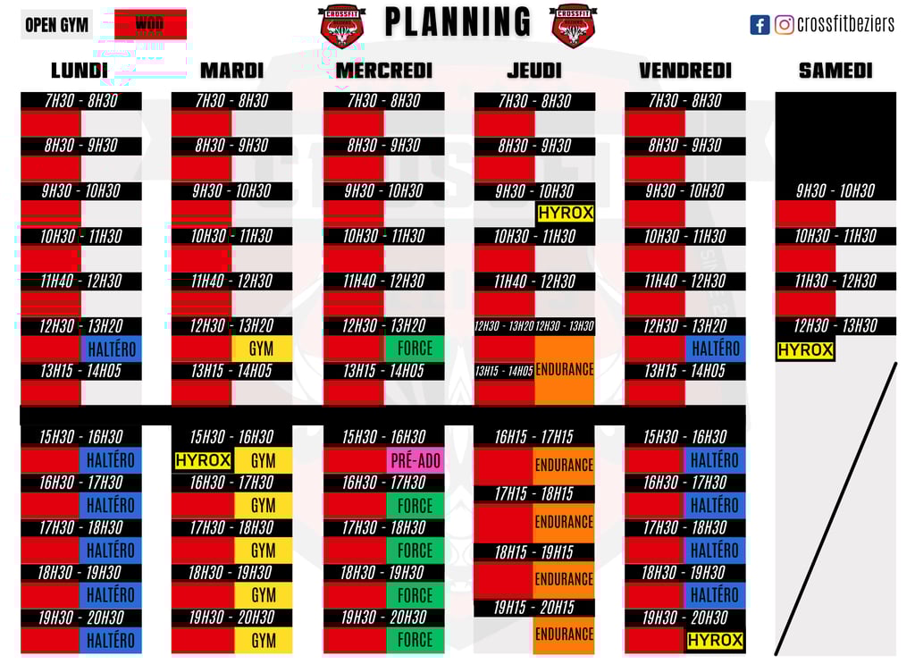 Découvrez nos horaires dédiés à l’Hyrox, adaptés à votre emploi du temps, pour intégrer cette discipline unique chez CrossFit Béziers.